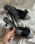 Step confidently with these Checkered Heels, perfect for bridging formal and casual occasions. Their distinctive pattern adds stylish flair while maintaining elegance, making them a versatile addition to your wardrobe. Enjoy comfort and sophistication whether you're heading to a business meeting or a social outing.